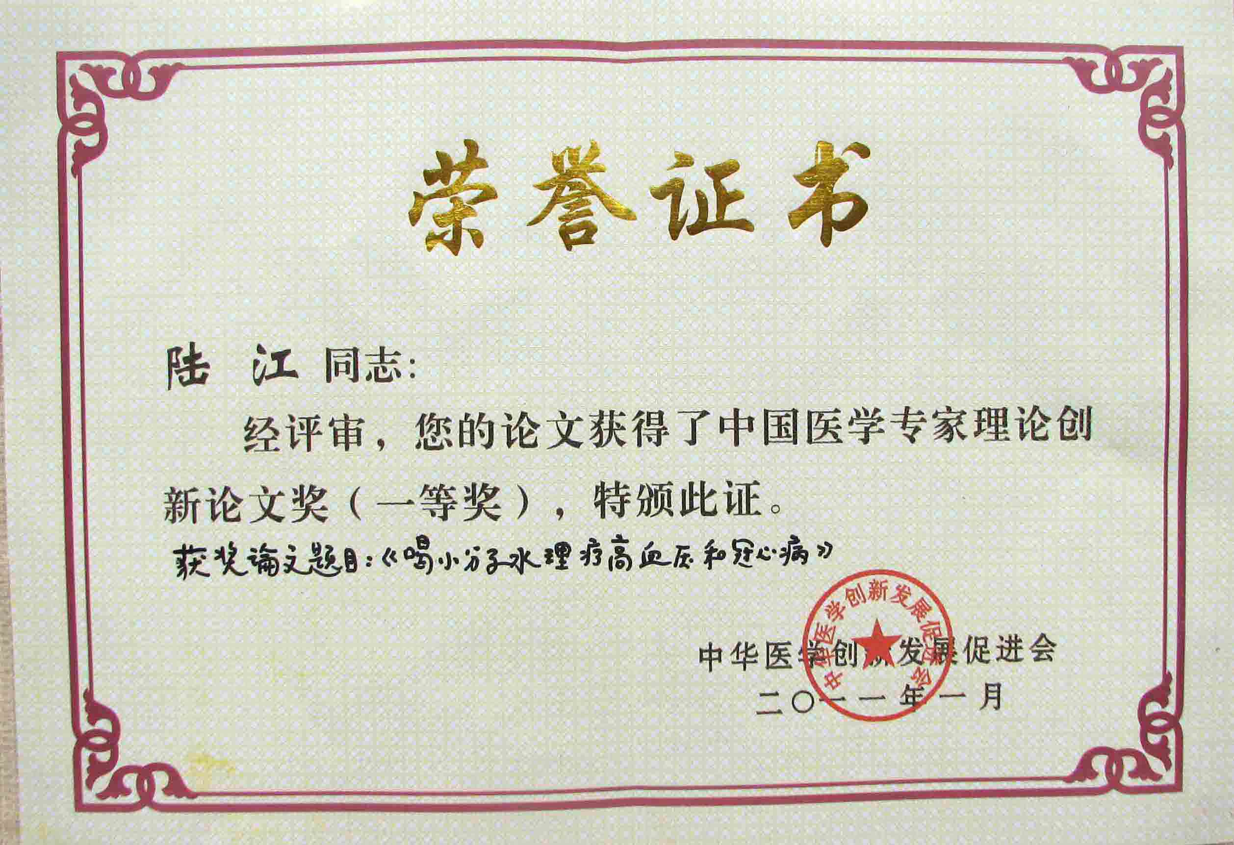 人類幾千年來患以上病癥需終生服藥,幾十年也不能治愈。可是我國南寧的高級工程師陸 江,于1990年想根治高血壓,研究發(fā)明了離子水瓶,處理出微小分子團水供飲用,經(jīng)過醫(yī)院臨床試用和專家鑒定,1999年獲中國發(fā)明專利權(quán),產(chǎn)品于2000年投放市場后一直跟蹤調(diào)查,據(jù)全國各地用戶反饋:祛除了高低血壓、糖尿病和冠心病,并使前列腺增生、咽喉炎、鼻竇炎、慢性氣管炎、支氣管炎、矽肺病、哮喘、慢性胃炎、腸炎、慢性膽囊炎、慢性腎炎、腎衰、膀胱炎、便秘、痔瘡、風(fēng)濕性關(guān)節(jié)炎和濕疹皮炎及中風(fēng)后遺癥等病癥不藥而愈。為什么喝微小水能治20多種病?陸 江從1991年德國科學(xué)家發(fā)現(xiàn)細胞膜水通道僅為2納米獲得啟發(fā),認為多種器官患病是因細胞脫水,不能正常代謝和分裂增殖,才使器官細胞減少致衰弱萎縮而形成細胞缺水性病癥。22年來的實踐有力地支持了“細胞脫水致病”這一重要論點,表明喝微小水可滿足細胞的生理需求,補水就能祛病,是生命科學(xué)新亮點。
