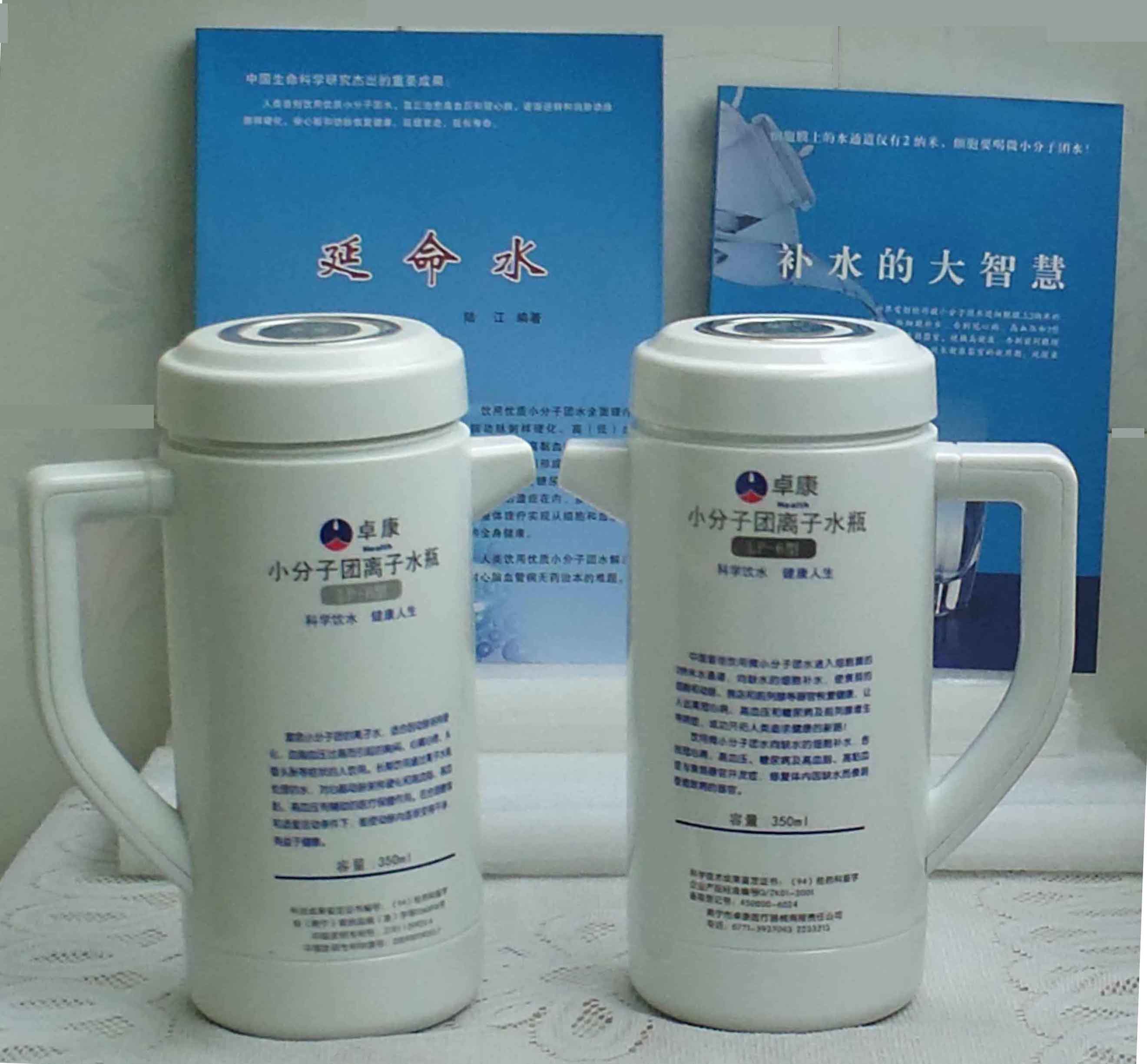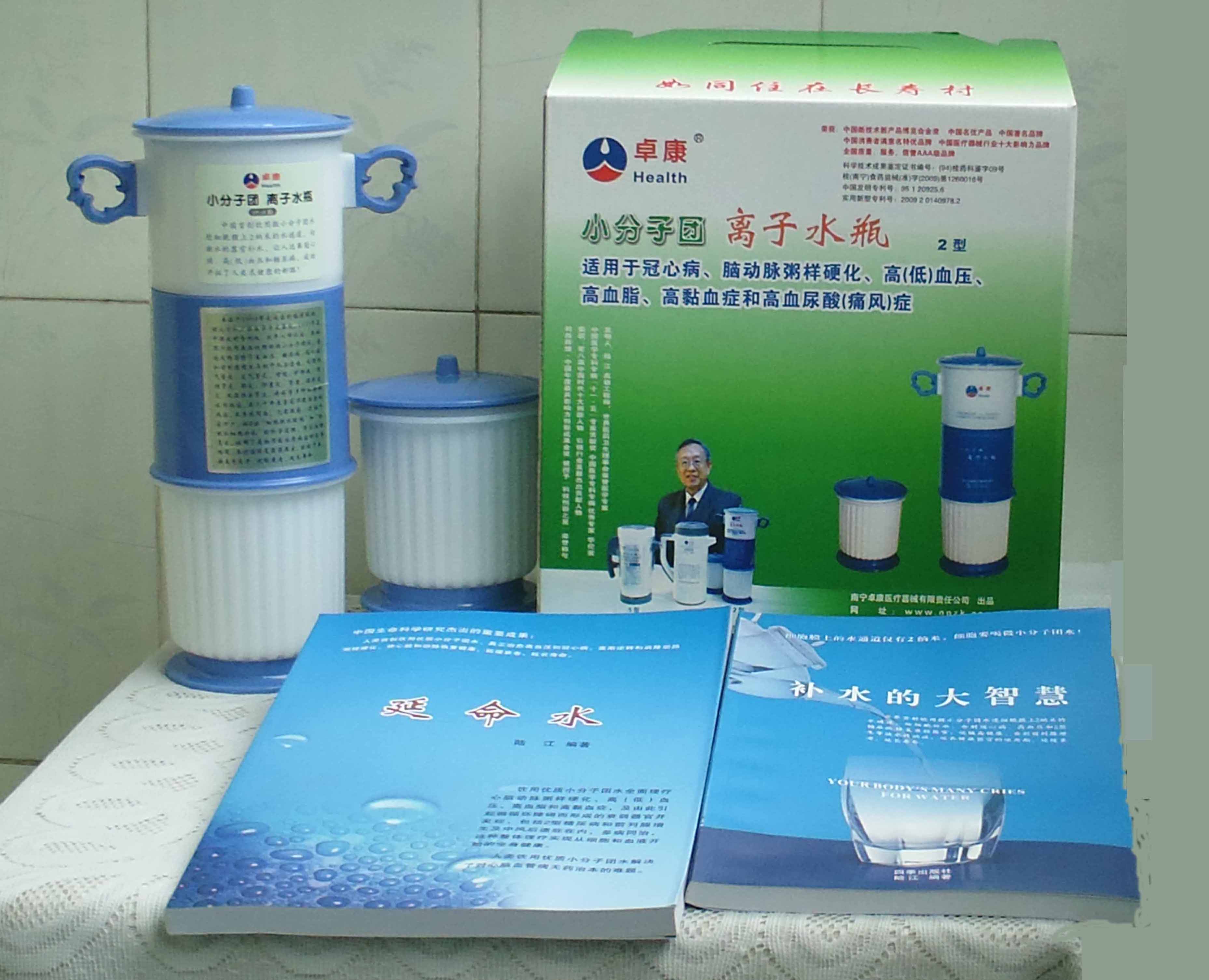 本品大量用戶的使用效果表明,能治愈冠心病、腦動脈硬化、原發(fā)性高(低)血壓、高血脂、高粘血癥、高血尿酸癥(痛風(fēng))和2型糖尿病、衰弱器官并發(fā)癥(前列腺增生、腎衰與尿毒癥)及中風(fēng)后遺癥等療效好。產(chǎn)品配信譽卡。使用壽命30年,不換芯,易清洗。團購優(yōu)惠。從郵局匯款,匯費1%,地址按本頁下方地址、聯(lián)系人寫。從銀行匯款,請點擊[聯(lián)系匯款]欄,從工商銀行匯款,建設(shè)銀行、農(nóng)業(yè)銀行匯款,均免收匯費,匯款后20--30分鐘內(nèi)發(fā)短信,可用微信轉(zhuǎn)帳,均免匯費,微信號即手機號13768308380。匯款后,告知你的姓名和地址,我公司聯(lián)系人手機號是:13768308380卓康牌離子水瓶為我公司獨家生產(chǎn),郵購產(chǎn)品配《補水的大智慧》彩印書一本,另配四季出版社出版的新書《補水的大智慧》一本,并配光盤一張(含央視主持人釆訪陸江的對話視頻)。目前市場和"淘寶網(wǎng)"上有人兜售假冒的偽品,望讀者審察辯別真?zhèn)危旒僬哓飧`假冒本公司的各種證、獲獎獎項、專利號和外包裝盒上的中英文字,包括科技成果的鑒定意見等,請讀者注意防偽。如何識別假貨?已經(jīng)買了假貨怎么辦?(請點擊[打假掠影][打假掠影])。