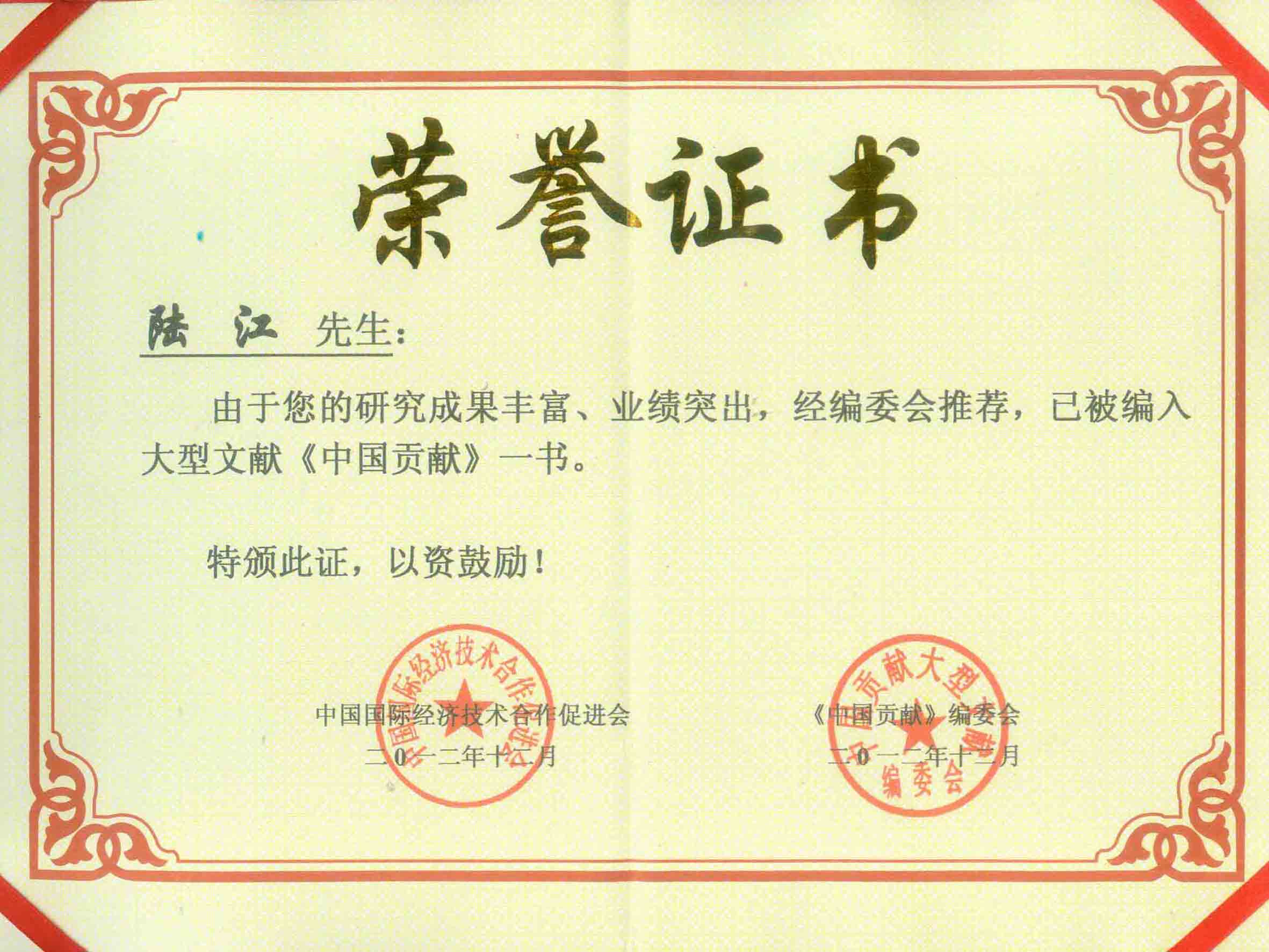 陸江的論文獲一等獎榮譽證書-- 陸江論文獲創(chuàng)新論文獎牌